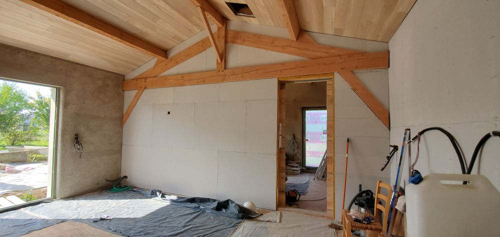 moment de la mise en place de la paille et de l’enduit en avril !!