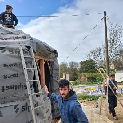 Notre projet s'est fait par des rencontres et formations avec Gurun Manrot qui est référencé comme constructeur de paillourte et de dômes en Bretagne.