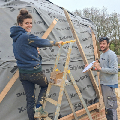 L'ensemble du chantier est guidé par nous, maitres d'œuvre : Anne-Cécile et Pierre-Olivier ainsi que par Thomas Souvignon, un professionnel présent notamment sur les chantiers participatifs.