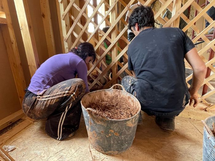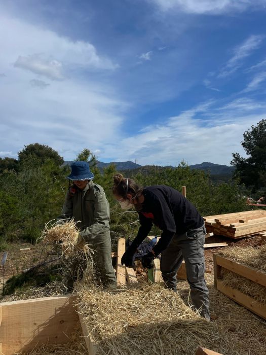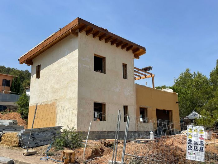 La maison est située dans un lotissement entre deux parcs naturels au nord de Valence, en Espagne. Il s’agit d’une maison à deux niveaux et d’une centaine de mètres carrés. Les travaux ont commencé le 1er avril et sont allés très vite grace à l'aide d'une coopérative locale de bioconstruction sur le gros œuvre. La structure est composée de caissons à double montant remplis de bottes de paille. À ce jour, les enduits intérieurs et extérieurs doivent encore être terminés, ainsi que plusieurs cloisons de BTC, les faux plafonds dans les salles de bain, installation de fenêtres/portes, carrelage et pose de plancher.