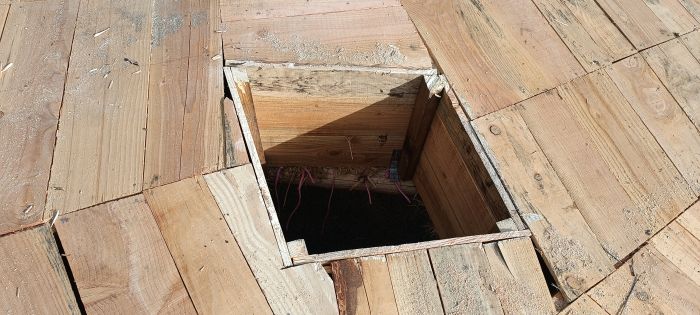 07/07 - 11/07 : préparation de la toiture (réservation poêle et autres sorties de toiture)