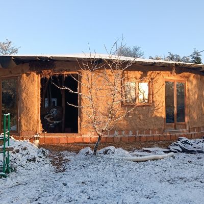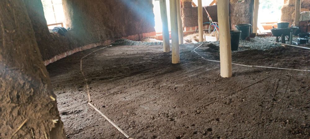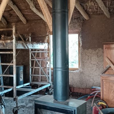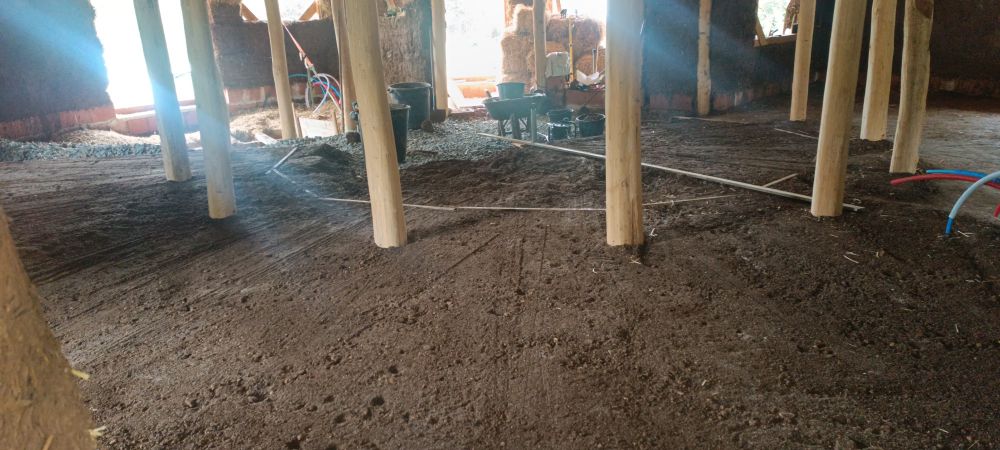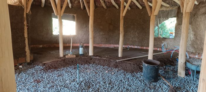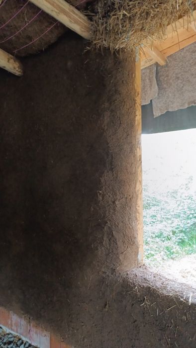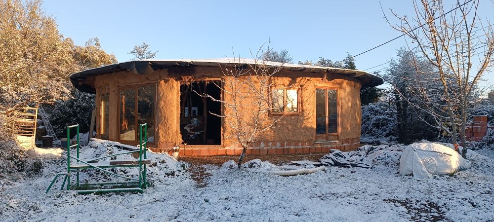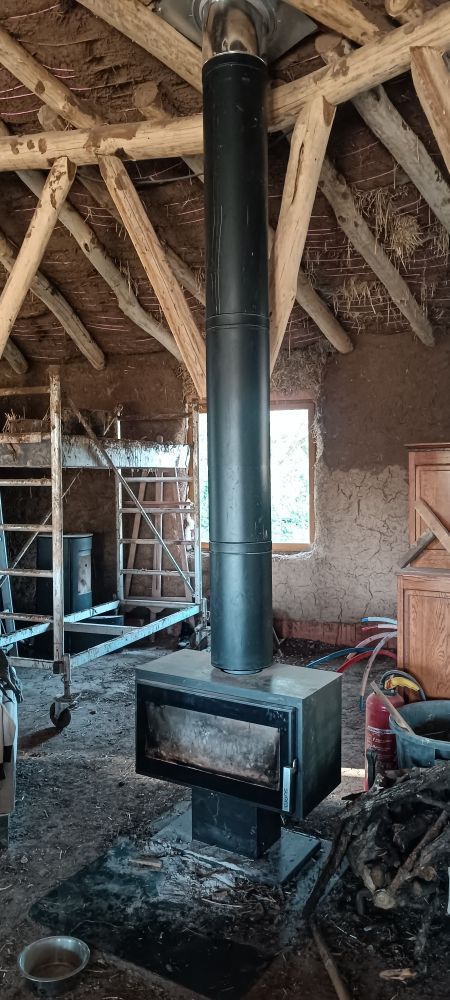 Ensuite évidemment enduits en terre paille à l'intérieur (murs et plafonds =[] ) , terre chaux à l'extérieur.