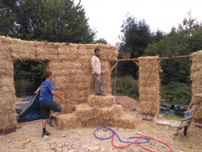 Inspirés par les constructions de Gurun Manrot (sur twiza aussi si vous voulez voir ce qu'il fait), on s’est dit qu’on se construirait bien un petit nid en paille et en terre pour passer l’hiver ! Ecologique et économique on essaie de faire au mieux avec les matériaux locaux et de récup :)