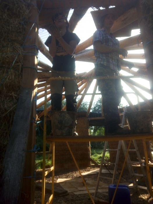 Je veux construire une habitation avec une empreinte écologique légère et joyeuse sur un terrain de 3000m2.C'est pourquoi j'ai fais le choix de la Paillourte : petite maison en paille avec charpente réciproque en bois Douglas.