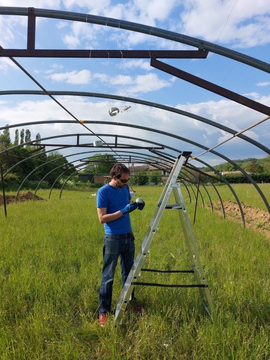 La grange est le premier bâtiment que nous allons construire, il va permettre de mettre en œuvre toutes les techniques à petite échelle avant le gros chantier de la maison. Nous aurons ainsi la possibilité d’adapter, les techniques, le matériel, et de changer les solutions techniques, si besoin !