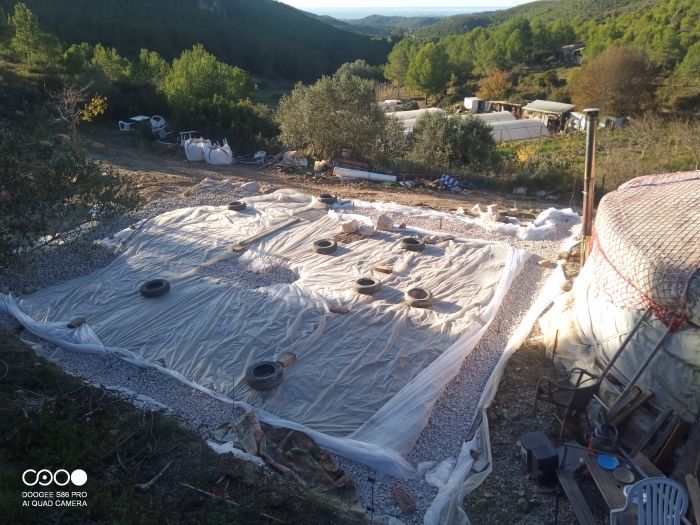 Nous sommes une petite famille, Charlie (maraîcher de profession) Helena (ingénieure forestière qui travaille dans le domaine des feux de forêt) Nil, Maël et une petite en chemin, venons de démontrer notre grande yourte pour nous lancer dans l' aventure de construire notre maison. Nous vivons dans une ferme agro-forestière de 13 hectares avec vue sur la mer, climat méditerranéen. A la ferme il y a déjà quelques bio-constructions, une maison en bois et une maison en pierre et une extension avec des murs en terre.