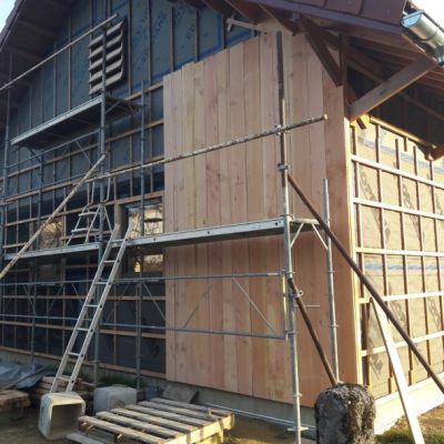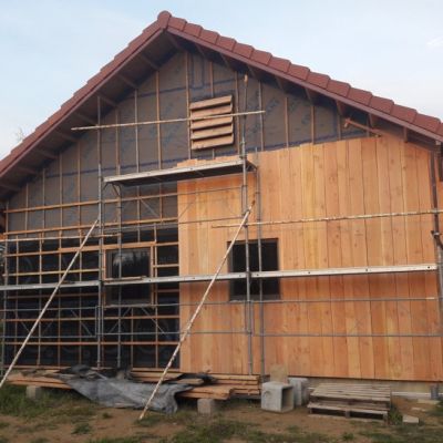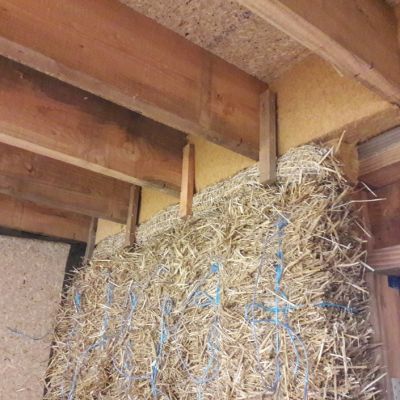 Le chantier a démarré en juillet 2024, en août 2025 nous sommes hors d'eau / hors d'air, et on attaque le second œuvre (isolation (paille et laine de bois), remplissage des cloisons, puis gaines élec et plomberie, VMC, etc.).