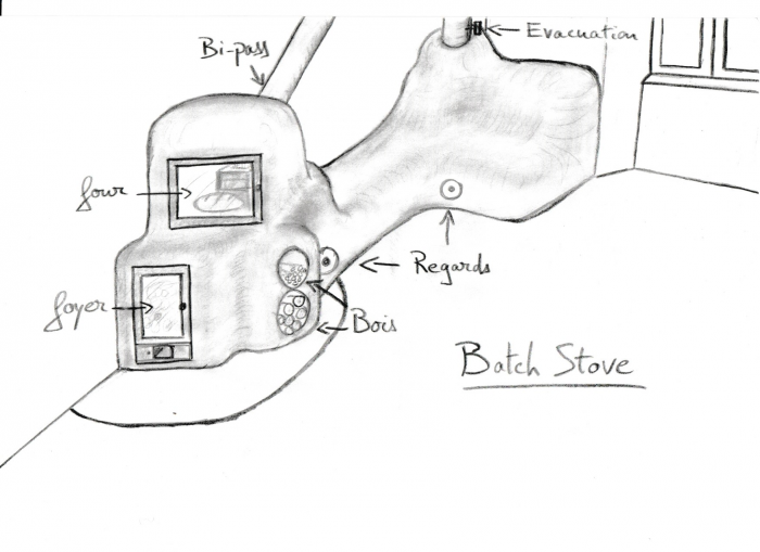 Le batch-stove est une évolution du rocket-stove qui permet notamment de faire des fournées avec des bûches.