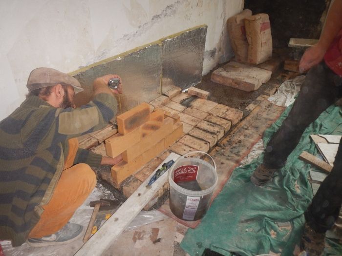 Nous utiliserons plusieurs techniques : maçonnerie de briques réfractaires, coffrage de mortier réfractaire, divers travaux de ferronnerie (quincaillerie, soudure), et terre-paille.