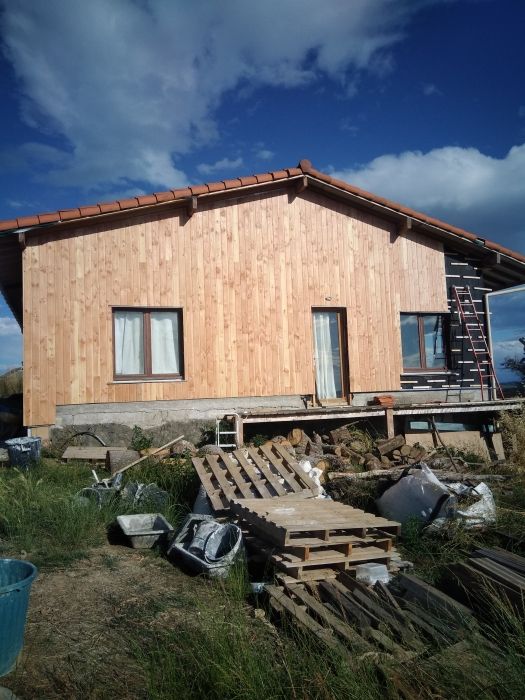 Nous ( ma compagne Anne et moi) avons acquis un terrain d'à peu près 12 ha de terres agricoles dont 3,5 ha de forêt, comprenant 3 bâtiments agricoles (de 500, 250 et 100 m2). Nous avons l'autorisation de transformer le plus petit en habitation, ce que nous avons commencé en été 2020, en autoconstruction bioclimatique.