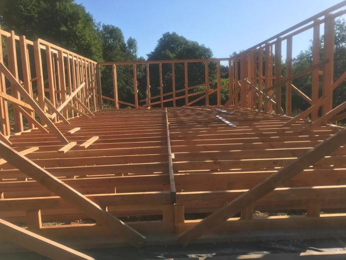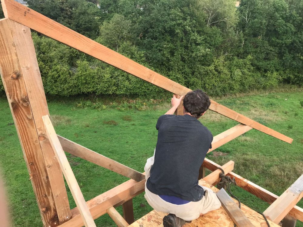 Ossature, charpente, un peu de réseaux, peut être la couverture si tout se passe bien, pose de solivages... bref surtout du bois! Idem, jardin possible en parallèle.