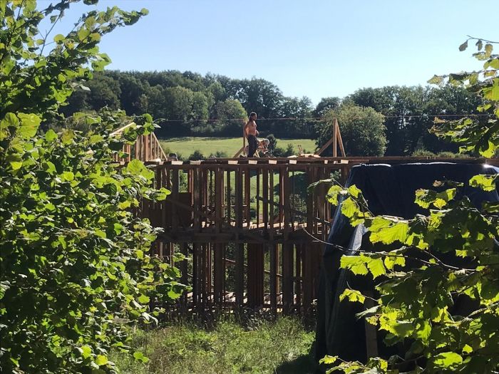 Pour être plus précis, les fondations cyclopéennes sont presque finies (avril), on a déjà deux grosses sessions de chantier prévues lors desquelles on a loué en plus le gite juste à côté pour vous loger au mieux :