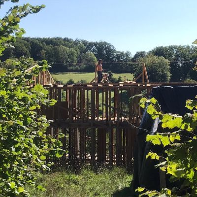 Nous avons de quoi bien recevoir, quelques logements en dur à proposer, une cheffe de cuisine de métier à disposition pour assurer des repas succulents et conviviaux, une cuisinière et un four à bois pour les mêmes raisons, un magnifique lac à 2 km pour aller se rafraichir en fin de journée!