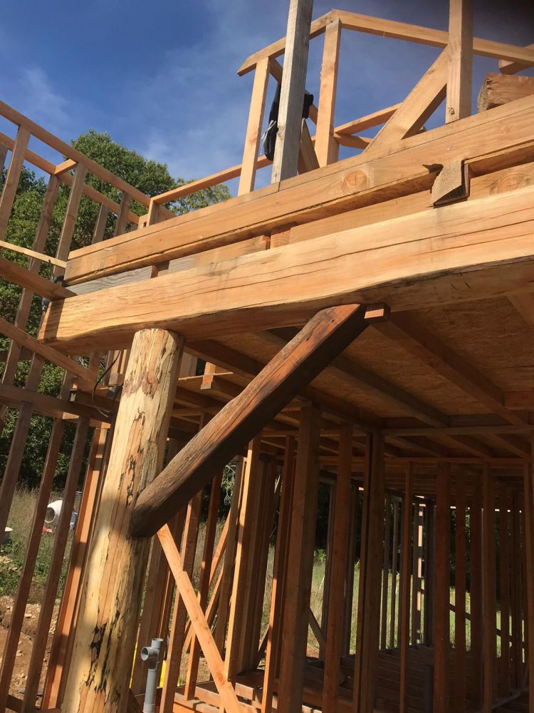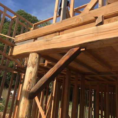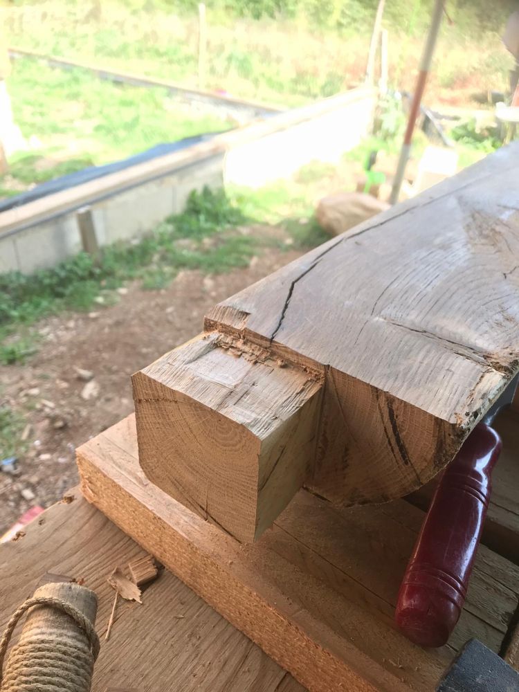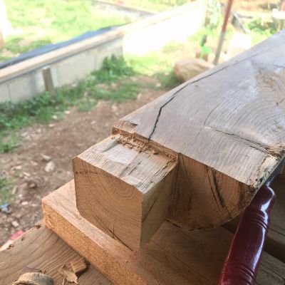 - Pas de ciment dans le mortier GREB : à la place, un assemblage à mi bois chevillé, comme un colombage à l'ancienne (ça nous permettra de ne faire que des enduits terre tout en rendant l'ensemble bien plus solide)