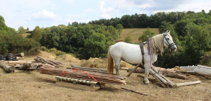 Eric a pleins de choses à nous apprendre, à partager tout ça dans la bonne humeur et la joie de vivre . Ici tout est presque réalisé à la main du débardage des troncs pour faire la charpente en traction animale, la sortie en caleche pour faire les courses au village, j'ai appris à faire des aux voliges, posé des morceaux de charpente, posé les voliges , tapé du pneu, construis à blanc un futur mur en bouteilles de verres. Bref un chantier diversifié, original et que de beaux projets encore à venir.... je reviendrai sûrement sur l'un de tes nombreux chantiers à bientôt Éric.au plaisir de partager encore et encore.