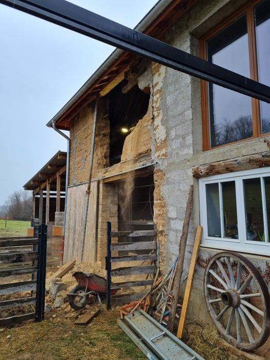 Préparation support pisé/le renformis/la pose du corps d’enduit terre paille/jointement à la chaux du soubassement en préservant leur caractère authentique.