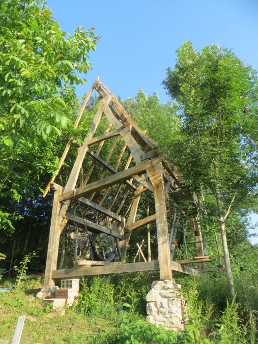 La structure en charpente traditionnelle est levée et maintenant il est temps de couvrir l'ouvrage !