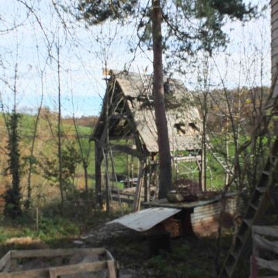 La cabane et moi-même nous trouvons sur un lieu collectif multiple où notre volonté va vers sortir de la propriété privée et aller vers une propriété d'usage. Il y a 2 maraîchères, un tisanier/liquoriste/forgeron, 2 personnes portant une asso autour de la thématique traverser le conflit.