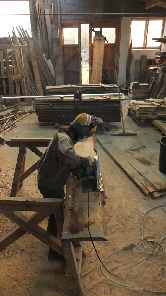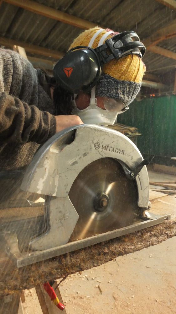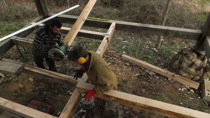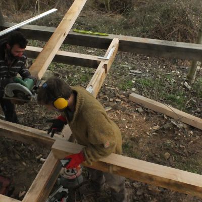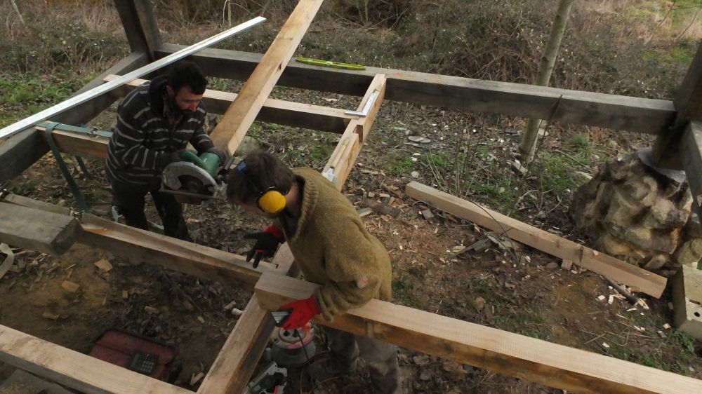 C'est un chantier ouvert en mixité. Sur le chantier (et sur la ferme en général) on porte un regard féministe et une attention soutenue pour éviter la reproduction des rapports de domination et déjouer les fonctionnements qui y sont liés le plus qu'on peut.