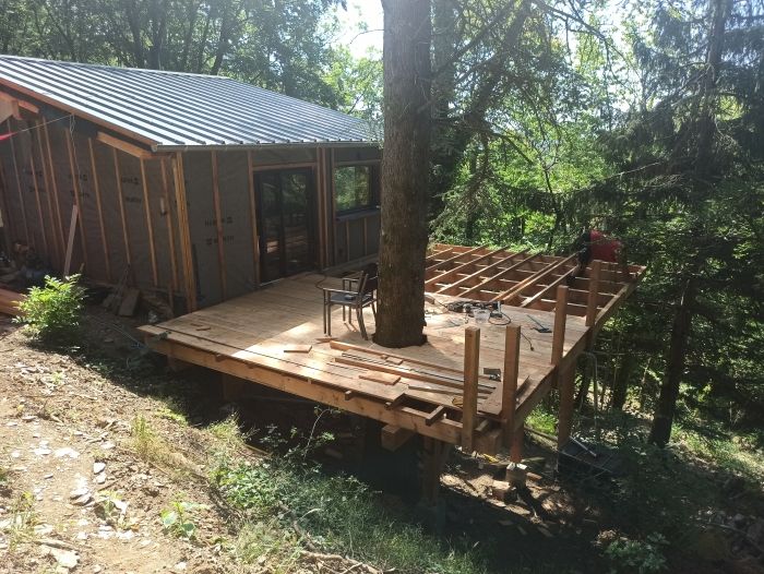 - construction d’un hangar pour accueillir notre tracteur et plein de matériel que nous ne savons pas où ranger (ruches et matériel d’apiculture, tuyaux, bottes de paille, sacs de sciures, matériel de construction divers…)