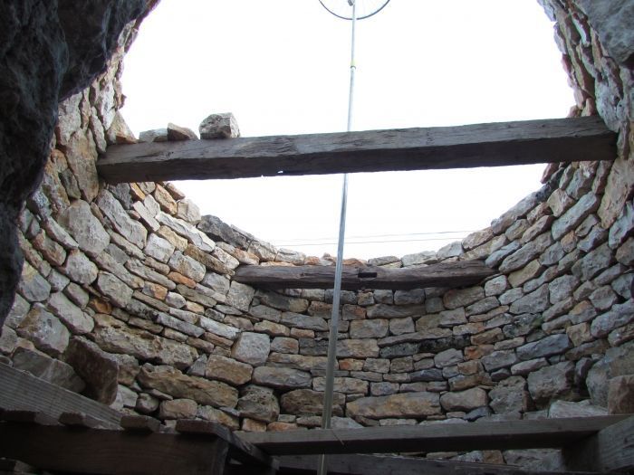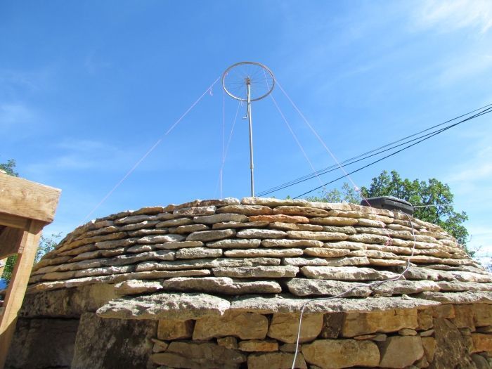 Et voila comme promis la première photo de la voûte. Pas besoin de coffrage, l'encorbellement est constitué de pierres posées a plat avec un fruit inversé sur la face visible.