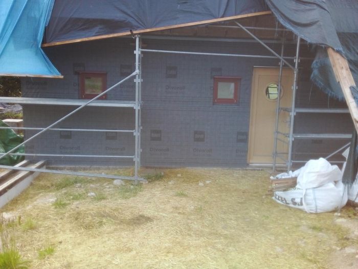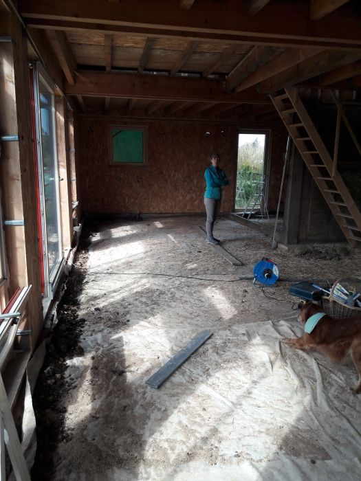 Un an et demi après le début des travaux, nous allons enfin nous attaquer au toit de l'habitation, au remplissage des murs porteurs (paille dans le GREB et ouate de cellulose), à la pose des menuiseries, du frein-vapeur puis au cloisonnement !!!