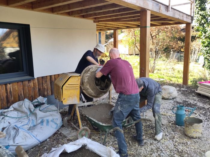 Ayant participé à un autre chantier similaire via twiza et après avoir effectué mes tests (dosage du mélange à préparer), je me sens à l'aise pour conduire cette partie du chantier sans accompagnent professionnel.