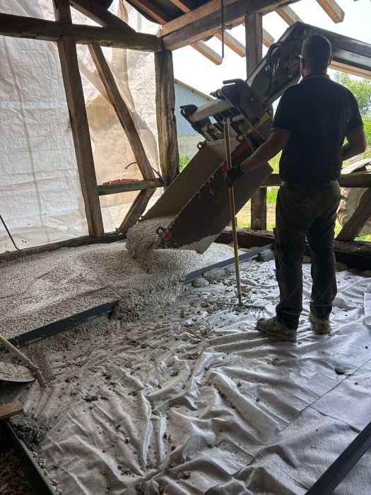 Nous restaurons à 2 ce grand bâtiment bressan depuis bientôt 3 années, nous avons refait la toiture et sa charpente (6 fermes sur 8 !) ainsi que les murs abîmés et commençons enfin à réaliser les sols de notre future maison.