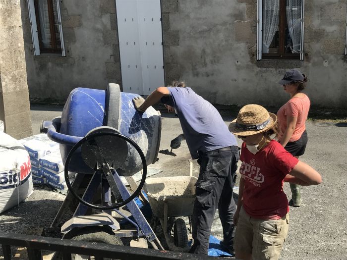 Nous avons bien avancé : cloisons cassées, réparation de planchers en bois, suppression de vieux crépis béton et plâtre pour faire respirer les murs, remplacement des menuiseries et nouvelle ouverture en pierre de taille. Mais nous devons maintenant nous lancer dans les travaux que nous maîtrisons mal : dalle chaux-liège, enduits et joints à la chaux. Nous recherchons aussi une solution pour utiliser l'eau de pluie pour alimenter chasses d'eau et machine à laver. Nous vous proposons de participer à ces chantiers dans la bonne humeur et le partage !