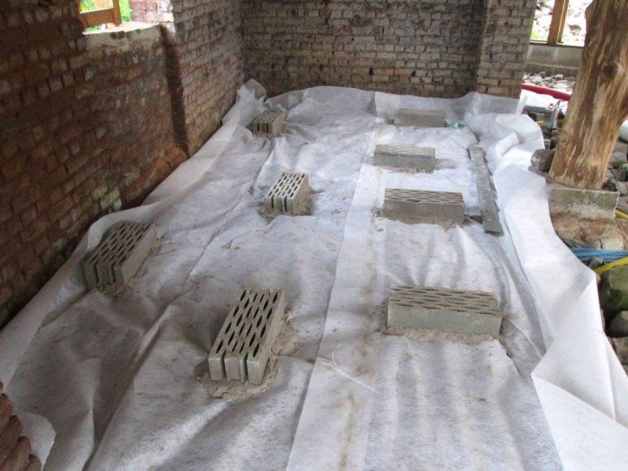 Réalisation d'une dalle en béton de chaux hydraulique NHL5 + sable de pierre ponce + sable 0/5.