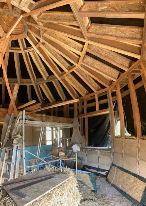 Notre structure bois est terminée! les prochaines étapes sont la pose des bottes de paille et la couverture de la toiture.