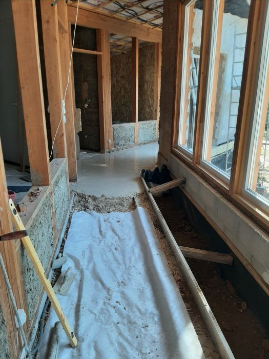- Janvier-Février : Dalle en béton de chaux + enduit du mur Nord, pose du delta MS.