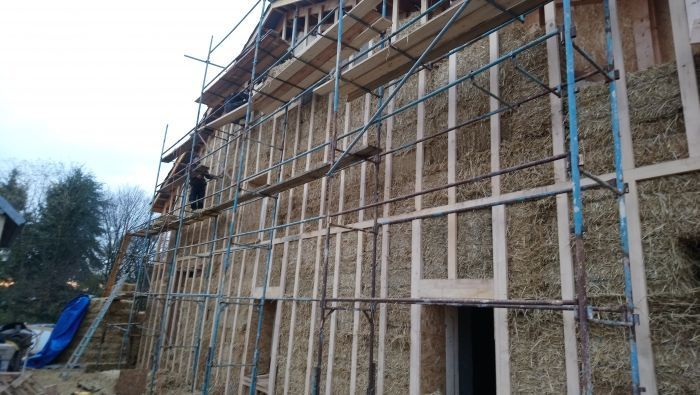 Il nous reste à réaliser les enduits intérieurs en chaux, finir la dalle chaux chanvre, l’isolation extérieure en paille et les finitions intérieures.