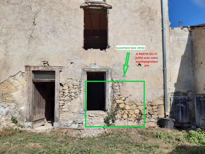 - Suite maçonnerie : rebouche de trous intérieurs, ouvertures de façades pour transformation de certaines fenêtres en portes-fenêtres (murs en pierre)