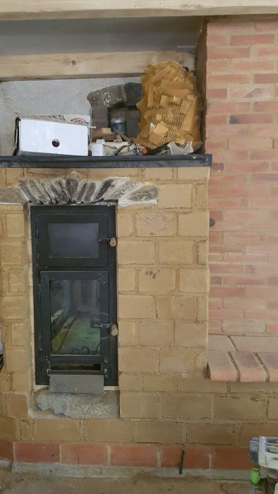 Nous sommes aussi en train de construire un poêle de masse, qui sera le seul point de chauffe de la maison. Avec un accumulateur à l'étage et par l'arrière, dans la salle de bain.