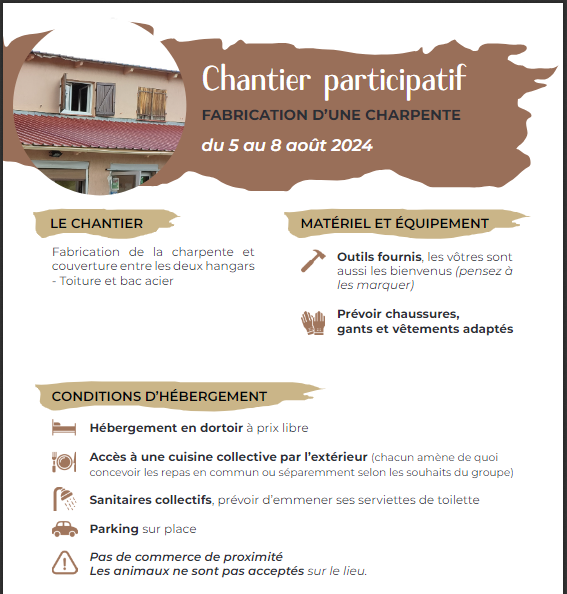Note de modération : ce chantier n'étant pas un chantier d'habitation chez un particulier, l'assurance du réseau Twiza ne fonctionne pas sur ce chantier participatif. Merci de voir en direct avec les hôtes de chantier l'assurance accident qu'ils vous propose