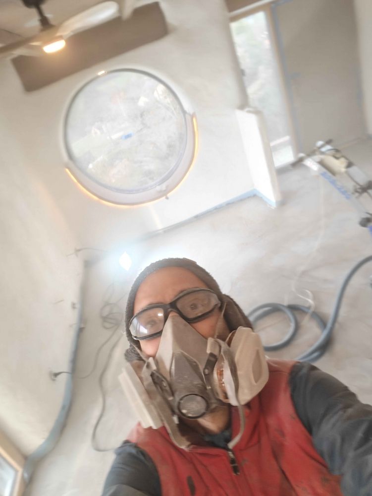 Caroline, notre accompagnatrice paille et enduits, va également nous partager ses connaissances et nous guider dans la réalisation des murs et plus tard des enduits. Nous avons aussi Maxime et Laurent qui nous accompagnent sur l'électricité et la plomberie.