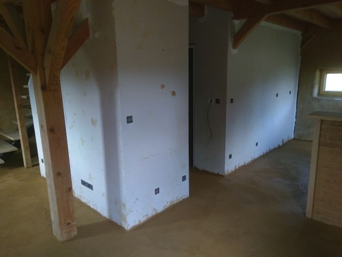 Du coup on va faire les enduits de finition à l'argile, une finition à l'argile aussi sur le sol qui et actuellement une chape en terre sur dalle bois.