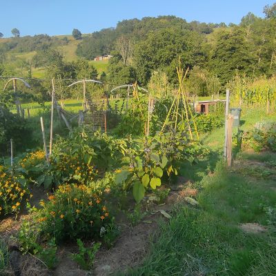 d’une impasse avec une zone naturelle juste après, idéale pour aller faire une petite marche et très bucolique. J’ai un grand potager en perma, un champ de myrtilles et plein d’arbres fruitiers. J’ai aussi un petit troupeau de brebis, 6 poules, 1 canard, 2 chats et ma compagne la plus fidèle et la plus adorable Lilu, une border collie vraiment très attachante qui me suit partout.