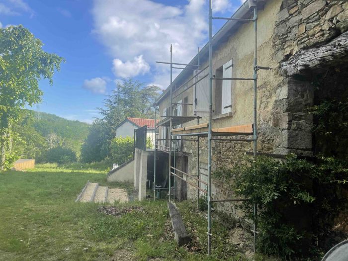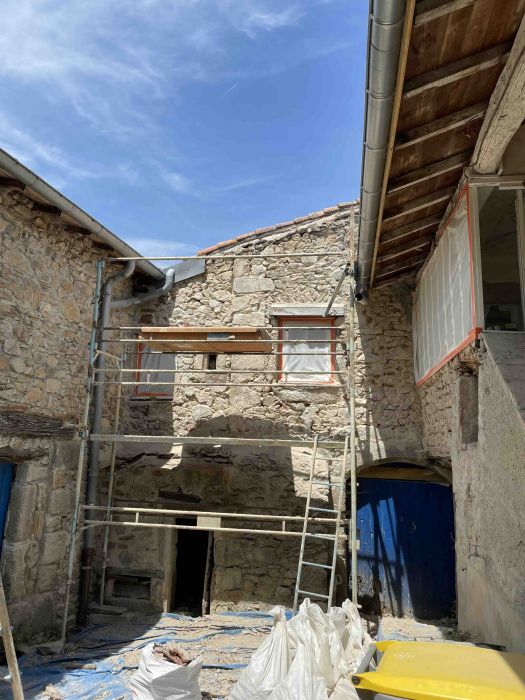 - rejointoiement dans la cours avec enduit chaux-sable sur mûr en pierre (~25m2)