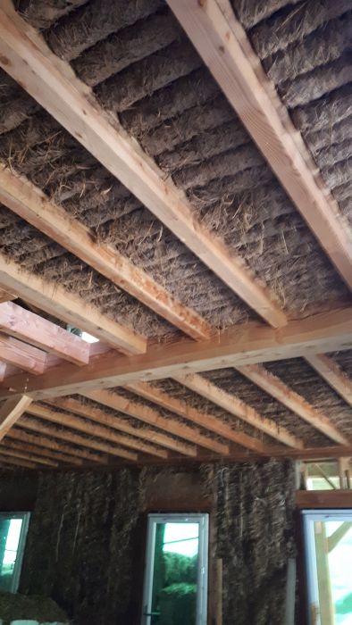 Nous avons quand même pu avancer cet hiver avec la réalisation de la dalle en paille et les quenouilles d'argiles qui forment le plancher intermédiaire. L'objectif de ce chantier est de terminer les murs afin d'être hors d'air pour l'hiver prochain (nous sommes déjà hors d'eau.