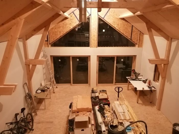 Pour tout le reste, le chantier continue aussi bien sûr avec la pose des réseaux, finitions intérieures, plomberie, etc.