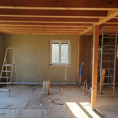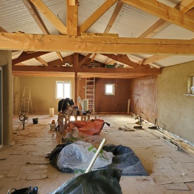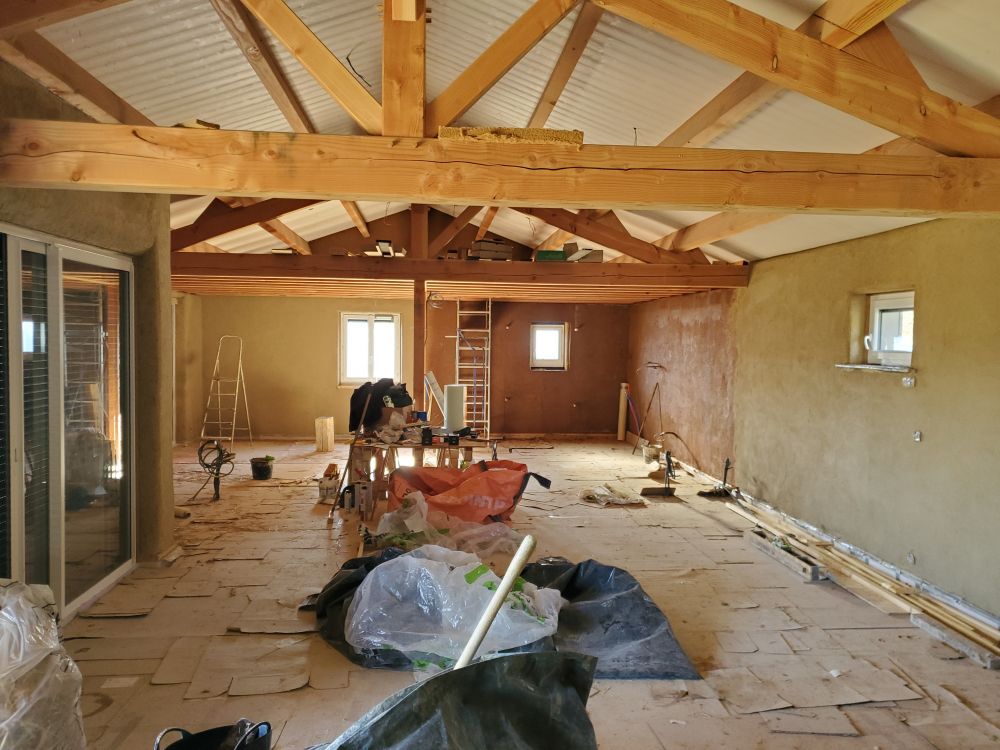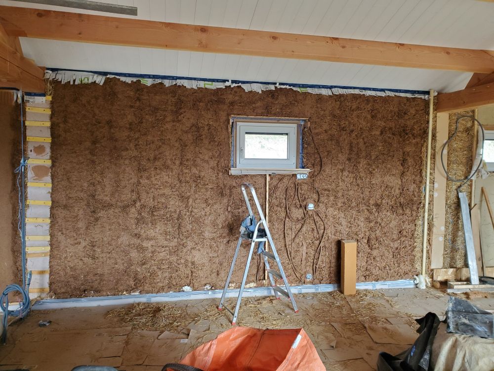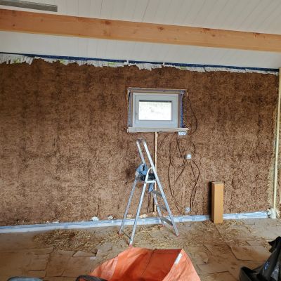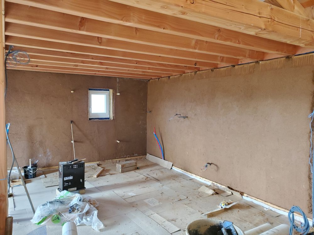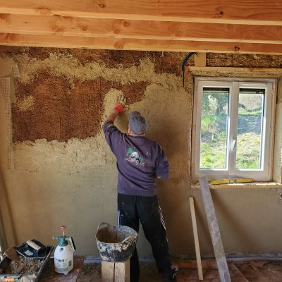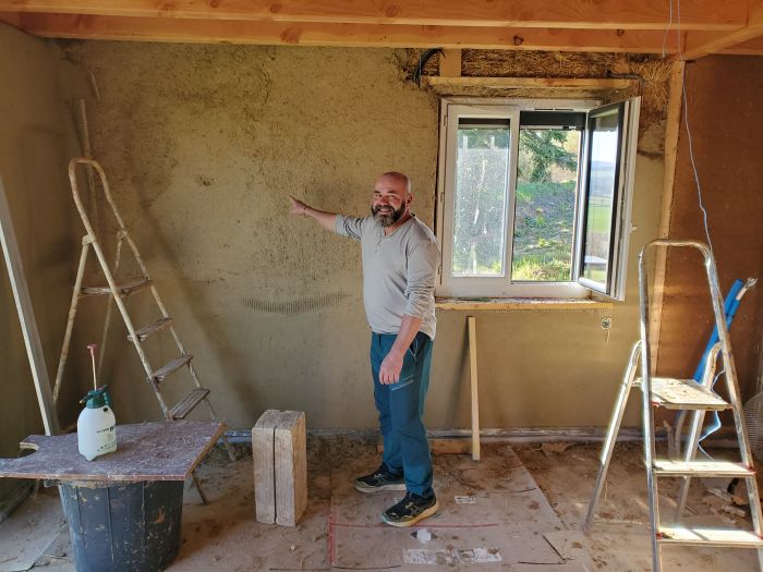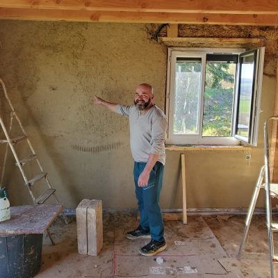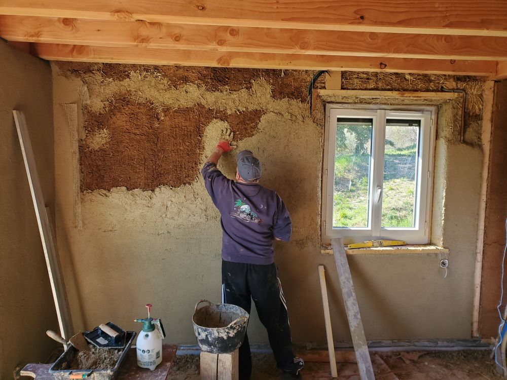 Après des années de rénovation d'un immense corps de ferme dans lequel nous vivons actuellement, Milaine et moi fans de nature, voyage rando marié depuis 25 ans aimant tout ce qui est manuel bricolage avons décidé de nous lancer dans un projet plus écologique avec une maison moins énergivore et le plus autonome possible. Nous construisons notre maison bois paille, avec des enduits terre intérieur. Panneau solaire pour l'électricité et récupérateur d'eau 10000l. Cela fait bientôt 3 ans que nous avons commencé. Nous attaquons les enduits terre et la fabrication de brique en terre crue.