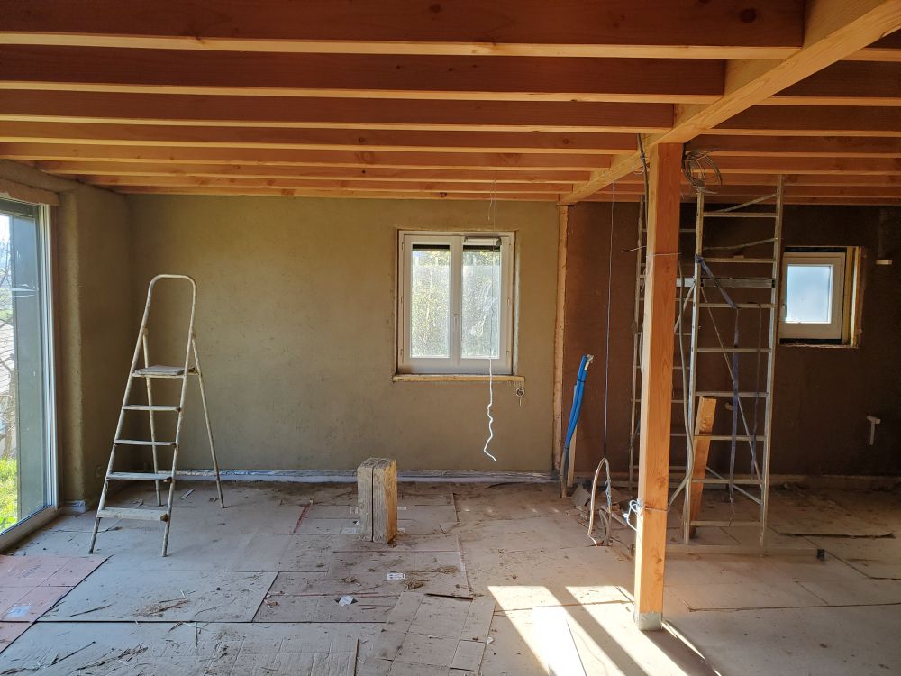 Nous avons fini le gros œuvre, la maison et hors d'air hors d'eau, le bardage est fait nous attaquons les enduits les briques je suis quasiment tous les jours sur le chantier ou j'alterne entre électricité plomberie menuiserie enduit ect...