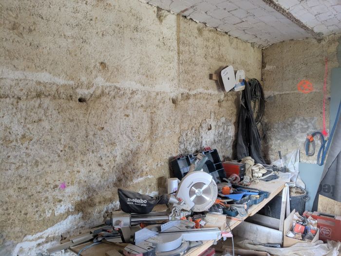 18 Octobre - rebouchage des trous avec mélange terre chanvre.