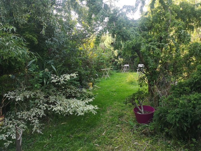 C’est un lieu magnifique, au cœur du bocage, au calme, à 30mn de la mer, que j’ai planté d’arbres il y a presque 15 ans déjà, avant d’entamer la restauration de la longère partie par partie, seule, avec mon ex-compagnon, ou en chantier participatif avec le réseau local. J’ai créé une salle de yoga dans une partie et un logement indépendant pour une co-habitante. Ainsi qu’une Kerterre avec toute une équipe en chantier participatif puis moi-même en y passant beaucoup de temps méditatif pour la terminer. La maison est aujourd’hui très agréable à vivre mais il reste encore des pièces à aménager (sans parler de la dépendance dont un mur entier s’est écroulé entre-temps…). Le jardin est très vert et relaxant, presque une petite forêt, avec des espèces sauvages, d’autres plantées, des espèces cultivées et d’autres sauvages comestibles. Les oiseaux chantent, les vaches broutent, les brocards se promènent…