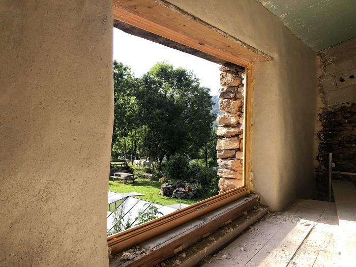 L’idée directrice de cette matière est double : fournir une inertie thermique, et offrir une belle finition à ces espaces enfin réhabilités, avec la terre prélevée tout autour, ce qui est très gratifiant !