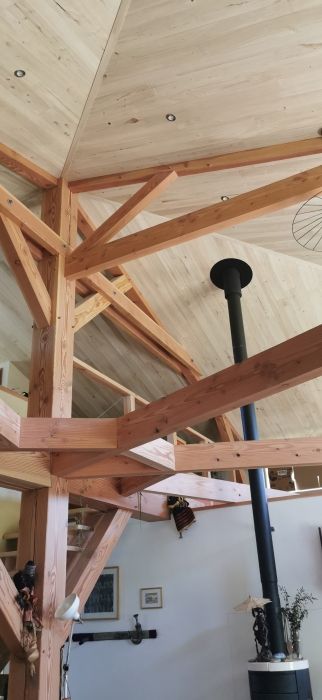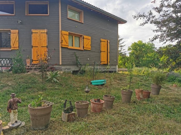 La maison de 120m2 en plain-pied est terminée. Elle est bioclimatique, avec murs en chaux, en terre, bardages bois, tuiles romanes, isolation en laine de bois, textile, fermacell et bottes de paille. Sur le terrain, je souhaite installer une mare, car la terre est argileuse et il y a une nappe phréatique à 5m de profondeur, des carrés potagers en permaculture et un poulailler en palettes, une douche solaire, des gradins... Enfin, je rêve.