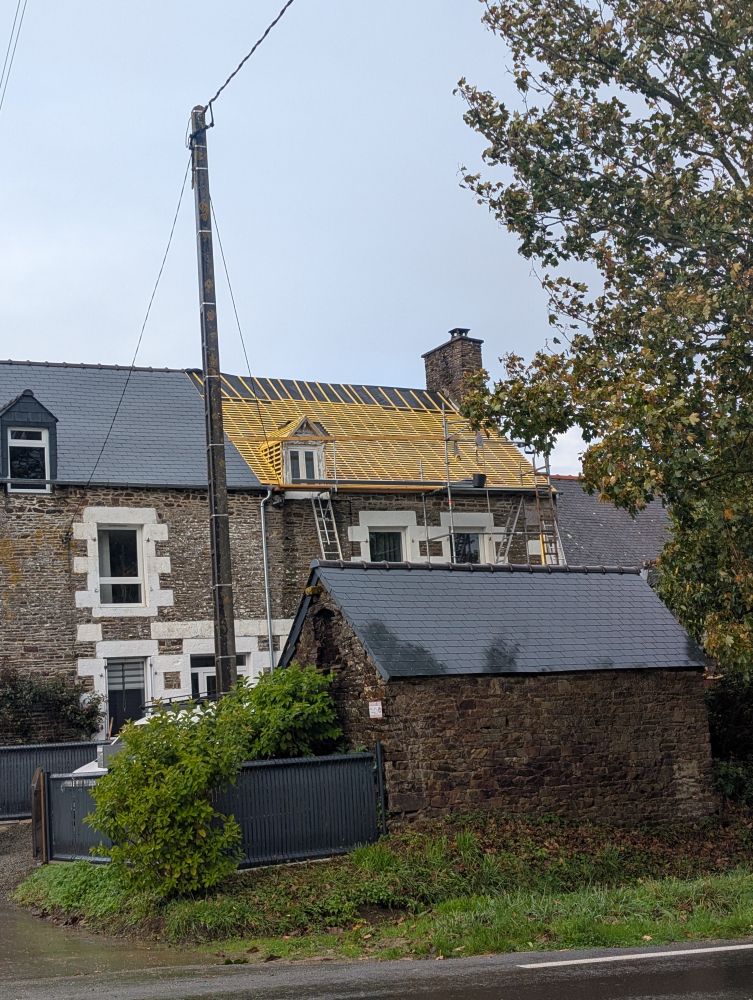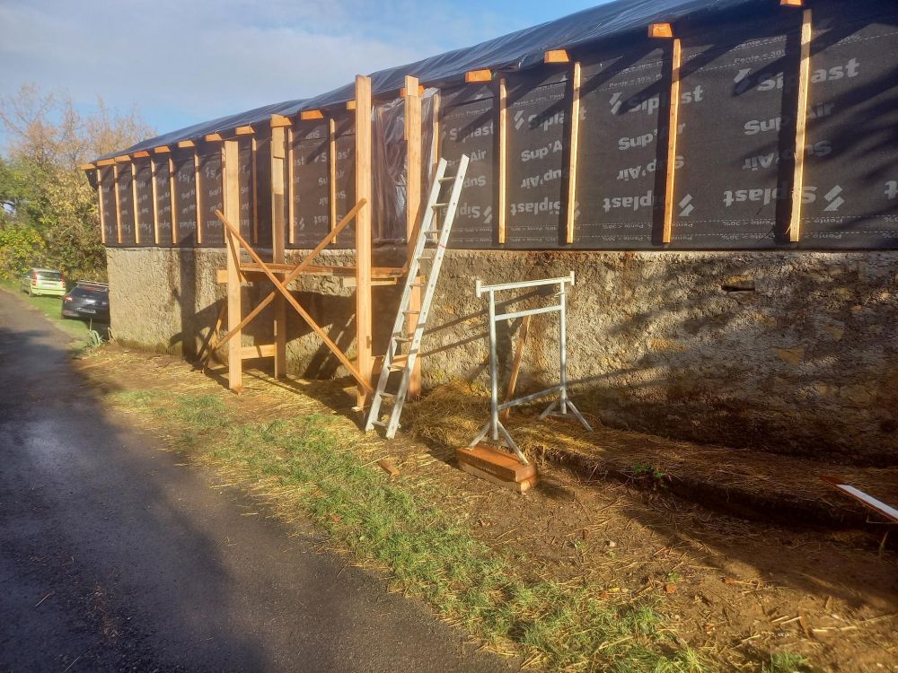 Semaine prochaine, pignon sud et si la météo le permet, on termine la paille sur le toit.