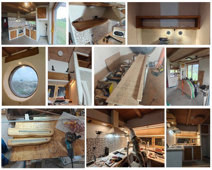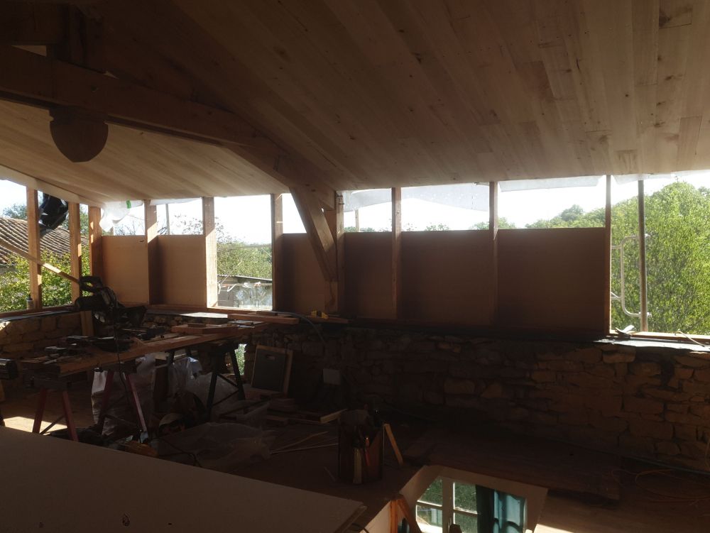 --- Notre grande fenêtre ronde (1,60 m de diamètre) attendait sa tablette en bois massif, un coin pour s’asseoir, lire, contempler le paysage et rêver…